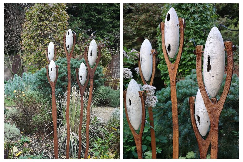 Metallskulpturen, Keramiken und Mixed Mediaobjekte von Stepahnie Ahn und Olaf Hülsmann. Rostbarkeiten, Rauchzeichenkeramik, kleinode Traumgestaltung und Eisenartiges.